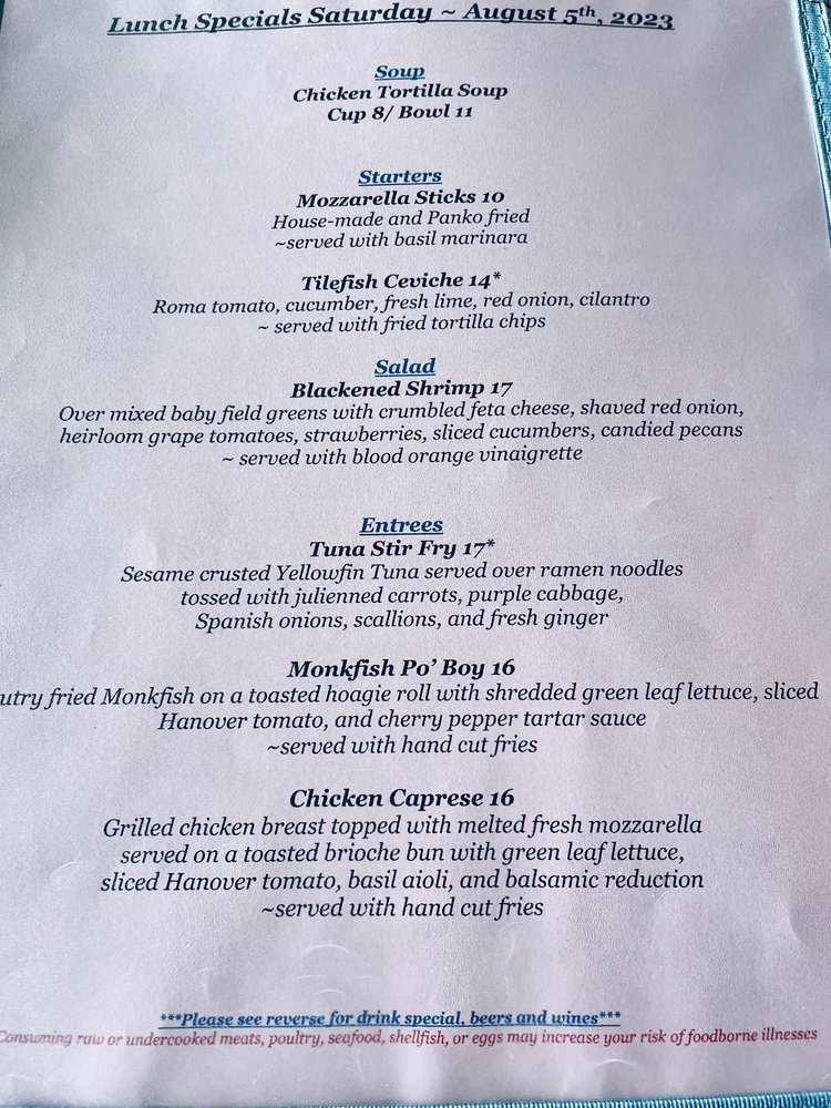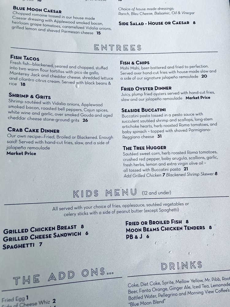 Blue Moon Beach Grill, located in Nags Head, NC, offers a Southern-Unclaimed-Seafood menu with a range of options for different dietary preferences. The restaurant provides Takeout, Delivery, and Vegan options, making it inclusive for all diners. With a Full Bar, Outdoor Seating, and Heated Outdoor Seating, customers can enjoy their meals in a comfortable setting. The menu features unique dishes like Fried Sheepshead & Grits and Crab Cakes, showcasing the restaurant's commitment to serving quality seafood. Customers rave about the excellent staff, spacious dining area, and delicious food options. Whether you're looking for traditional Southern comfort food or seafood specialties, Blue Moon Beach Grill is a must-visit for a memorable dining experience.